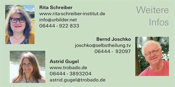 | Innenweltsurfen® - Praktisches lernen was gesund macht: Was Du brauchst ist eine Therapiewoche mit 7 Sessions bei Bernd Joschko, Rita Schreiber oder Astrid Gugel für 1.990 € Wir haben zusammen mehr als 90 Jahre Erfahrung mit innerlichem "aufräumen" und stabilisieren. Diese Woche ist auch eine hervorragende Möglichkeit der Krankheitsvorbeuge - auch für Menschen mit erhöhtem Krebsrisiko. Wir bearbeiten das Familienenergiefeld und entschärfen Traumata Deiner Vorfahren. Deine Resilienz wird dadurch enorm erhöht, um mit der heutigen Chaoszeit beseer umgehen zu können. Unsere Innenweltarbeit hat sich ständig weiterentwickelt: Von der Synergetik Therapie zur heutigen Psychobionik gibt es wesentliche Verbesserungen zur Nachhaltigkeit und Effizienz. Auf Wunsch nutzen wir "Künstliche Intelligenz" zur Beurteilung der verschachtelten Innenweltmuster. Die nachfolgenden Beispiele zeigen die Qualität der Beurteilungen eindrücklich auf. |